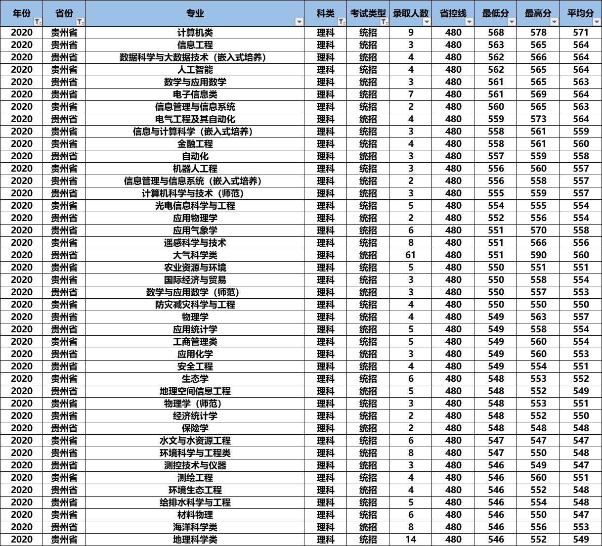 6、南京信息工程大学贵州省2020年理科专业录取数据: